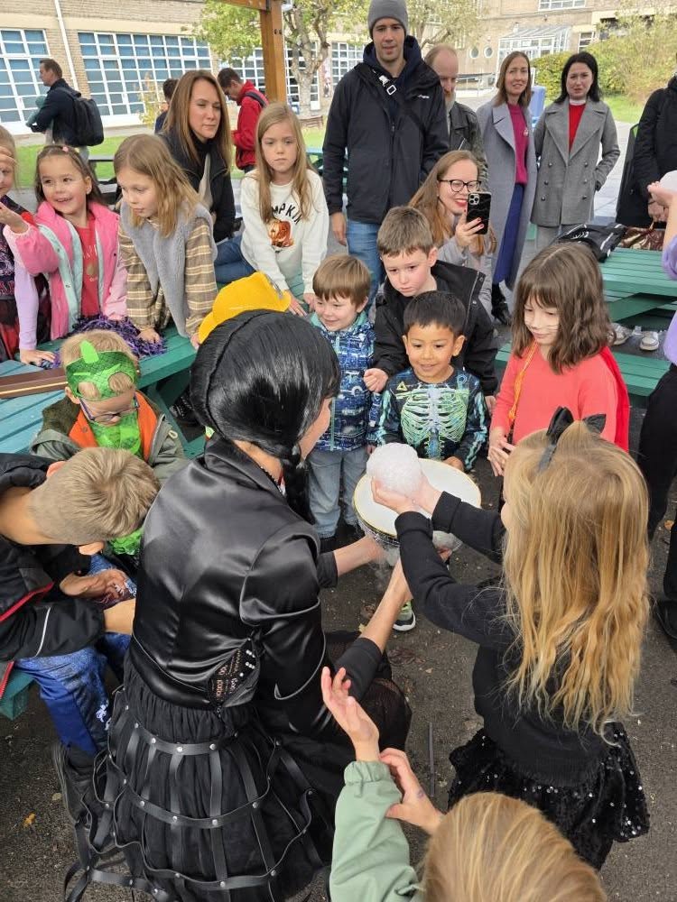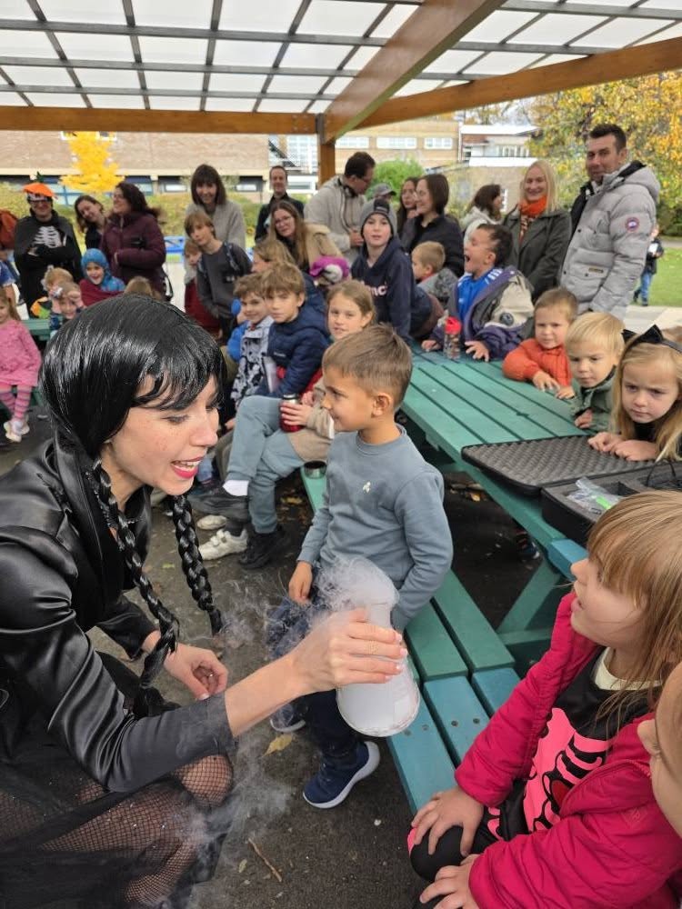 Ведьма и ее помощник Чёрный Плащ показывали ребятам волшебные химические опыты, в Студенческом центре вместе с Валентином Русиновым можно было украсить дерево осенними листиками.