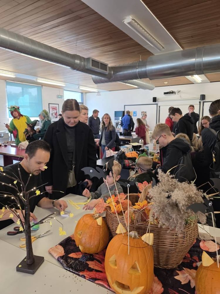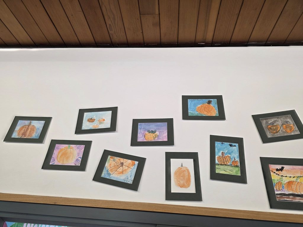 В Студенческом центре — выставка работ наших учеников по теме осени и классные нарисованные тыковки.