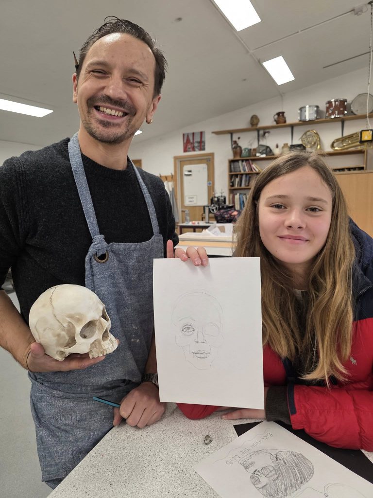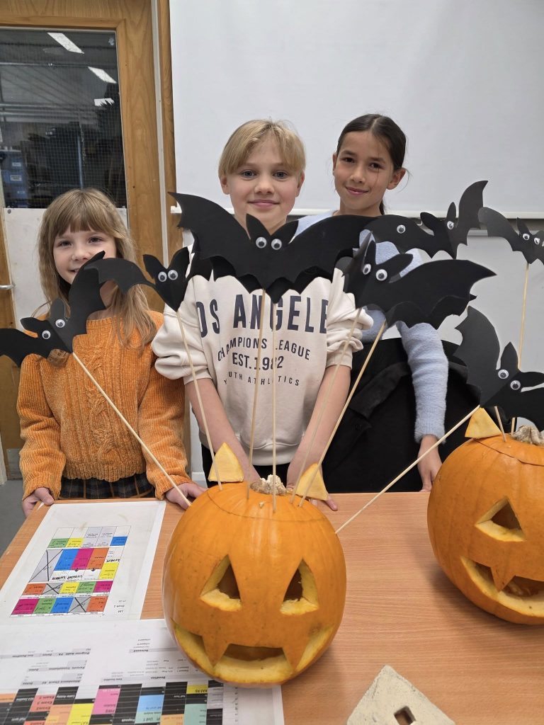 На уроках ИЗО ребята мастерили тыквы, летучих мышей, маски и даже рисовали в пропорциях человеческий череп.